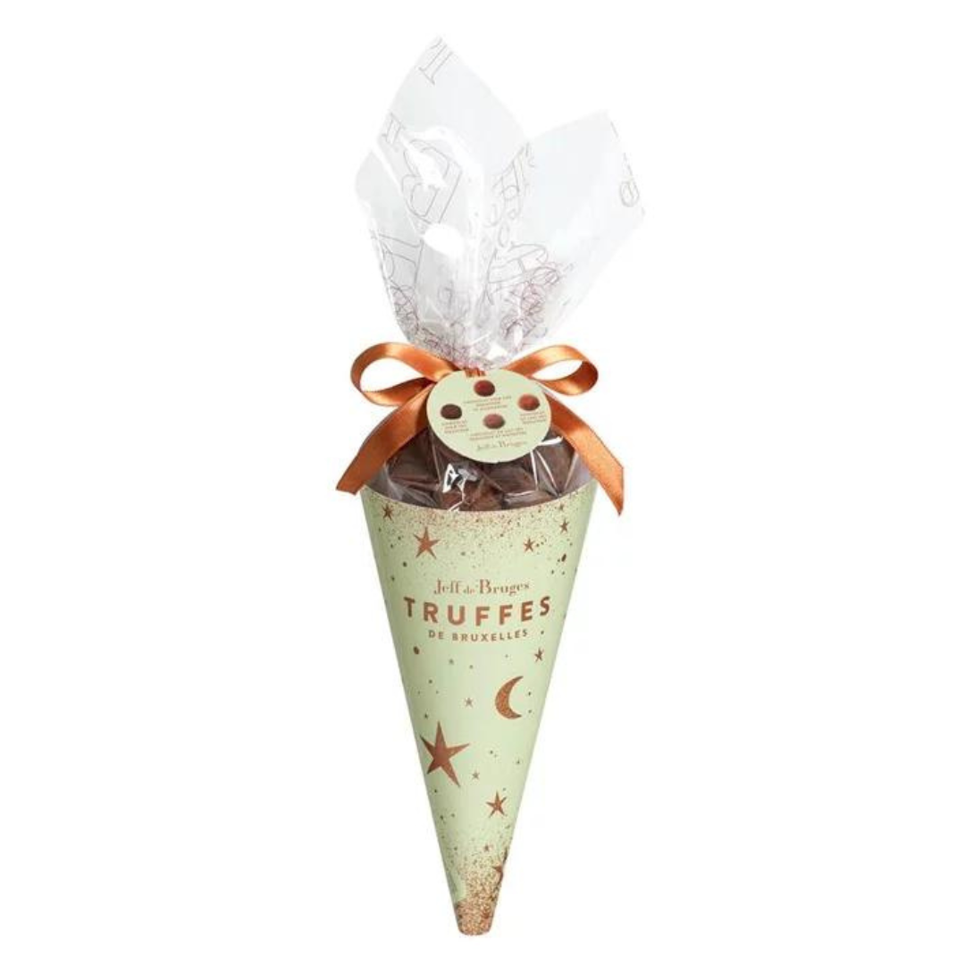 S’il y a bien une gourmandise incontournable des tables de Noël, ce sont les truffes de chocolat, ces petites billes fondantes, généreuses, chocolatées à souhait, de pures merveilles pour les papilles ! Dans ce cornet au design festif garni de Truffes de Bruxelles, vous découvrirez notre nouvelle recette de pâte à truffes aux éclats de noisettes caramélisées…